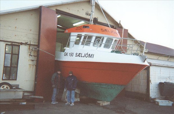 Hér sjáum við bátinn við aðsetur Sólplasts, sem þá var í Innri - Njarðvik og síðan eru myndir úr Vogum, en þar var hann sjósettur.
