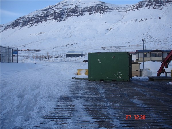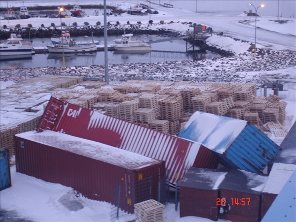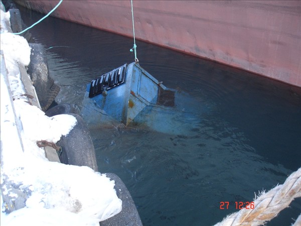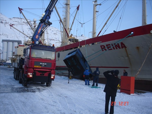 Gámurinn hífður upp © myndir Bjarni G, á Neskaupstað 27. og 28. des. 2011