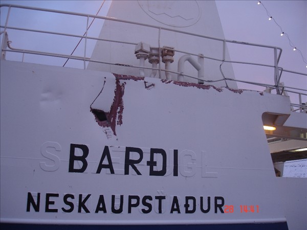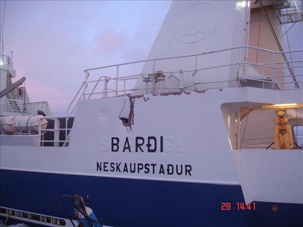 Í óveðrinu á aðfangadagskvöld í Neskaupstað skemmdist Barði NK en Barði slitnaði frá að framan og sést í eftirlitsmyndavélum þegar skipið slitnar frá bryggju og leggst á bb hliðina um ca 45 gráður, Barði lendir síðan á Reinu og gerir gat á skutinn og slítur síðan landfestatóg Reinu. Einnig kom gat á Barða og lunningin aftan við stýrishús bognar. Svo fuku ruslagámar í sjóinn og sést á einni myndinni gámur sem fauk í sjóinn við hliðina á Bjarti NK og á annari mynd sést hvar gámurinn stóð bundinn í síldartunnur með steypu í og er vegalengdinn sem gámurinn fór ca 6-700 metrar og ekki merki um að hann hafi komið við jörð í flugferðinni. Einnig fuku stórir gámar og bretti kv Bjarni G