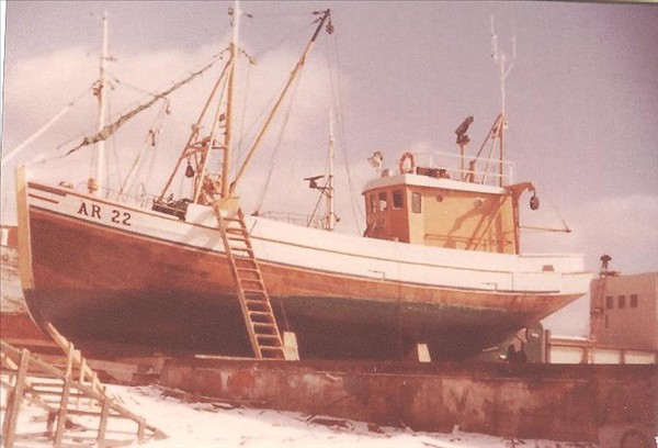 Hér er á ferðinni einn af þeim bátum sem smíðaðir voru í Hafnarfirði. Hann strandaði 1963 en var náð út aftur og sökk síðan í Húnaflóa 1979, Sögu hans birti ég undir myndinni.