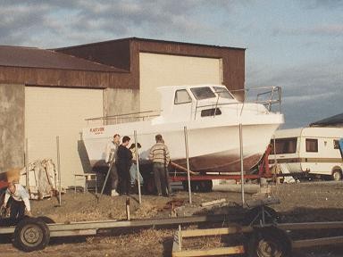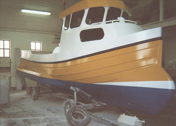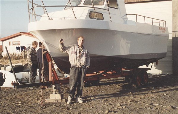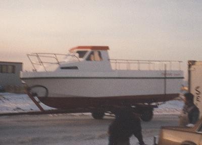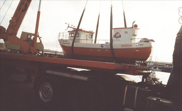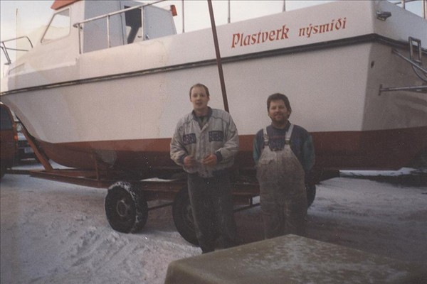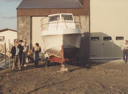 Í fyrrinótt birtist mikil syrpa frá Selmu ÍS 200. Raunar gleymdi ég aðalmyndinni en hún er nokkuð söguleg fyrir Sólplast. En sökum hrakhóla með húsnæði var báturinn að lokum pússlaður saman á vélaverkstæði Jóhanns Viðars í Njarðvik og kláraður þar. Birti ég hér mynd af honum sem sýnir þegar búið var að pússla hlutunum sama og að lokum fylgja með myndir af tertunni sem var í boði þegar báturinn var búinn.