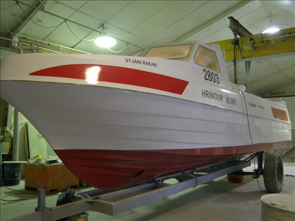 Eftir helgi verður tekin út úr húsi þessi nýframleiddi bátur hjá Bláfelli ehf. á Ásbrú. Hann er þó ekki alveg búinn og verður því fluttur annað, þar sem gengið verður frá rafmagninu, tækum o.fl. Vonandi gefst sökum veðurs tækifæri til að ná mynd af honum í heild sinni er hann er kominn út. Hér birti ég smá syrpu sem ég tók í dag af honum inni í húsi hjá Bláfelli