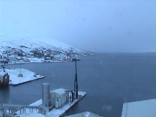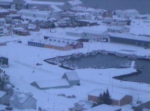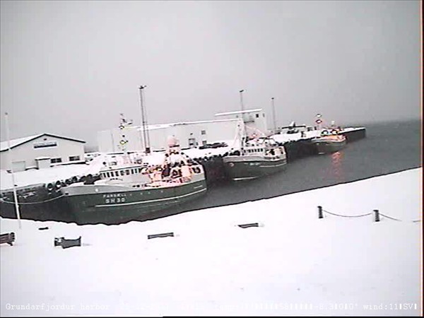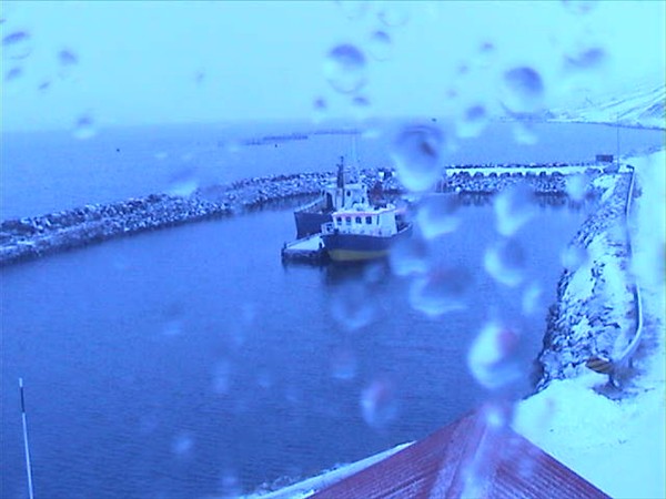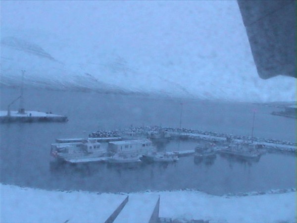 1279. Brettingur KE 50, í snjómuggunni í Hafnarfirði í hádeginu á aðfangadag, en eins og sjá má er hann orðinn blár að lit, sem er nánast sami liti og hann bar er hann var NS 50
