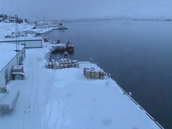 1279. Brettingur KE 50, nú blár, í Hafnarfjarðarhöfn í hádeginu á aðfangadag jóla