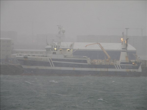2182. BAldvin Njálsson GK 400, í snjómuggunni í hádeginu á aðfangadag, í Hafnarfirði