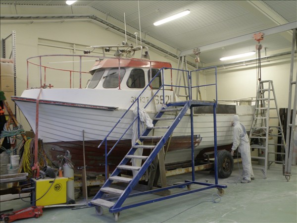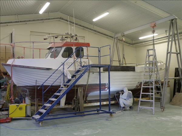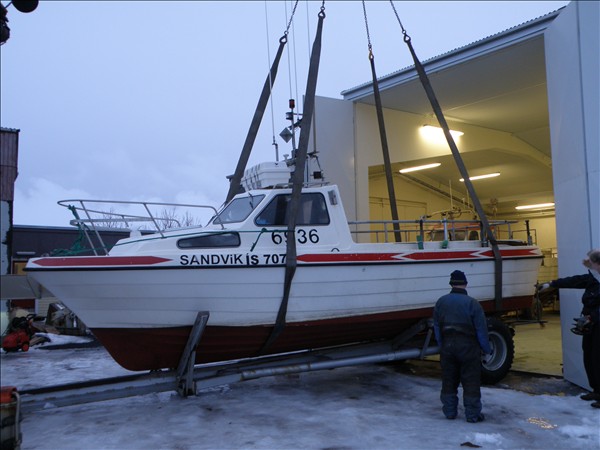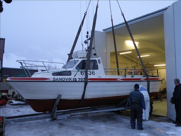 6936. Sandvík ÍS 707, kominn á þann stað sem hann mun verða einhvern tíma, innandyra hjá Sólplasti í Sandgerði © myndir Emil Páll, 22. des. 2011