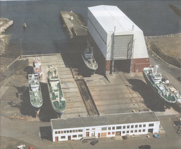 Loftmynd af hluta af slippnum hjá Skipasmíðastöð Njarðvikur fyrir nokkrum árum