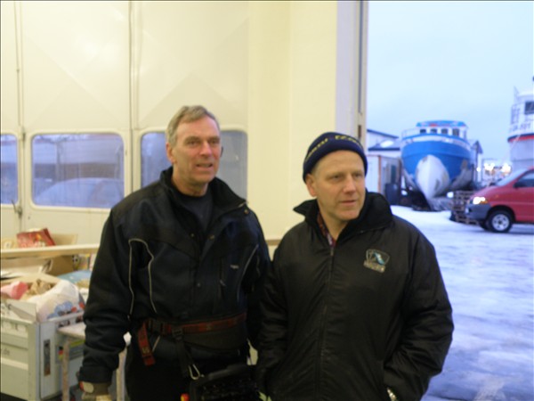 Margeir Jónsson (f.v.) og Páll Jóhann Pálsson og utan dyra má sjá enn einn Grindvíkinginn, eða kannsi fyrrum Grindvíking, er hann hét þar Sigurvin GK 61 en er nú skráður Sigurborg I GK 61