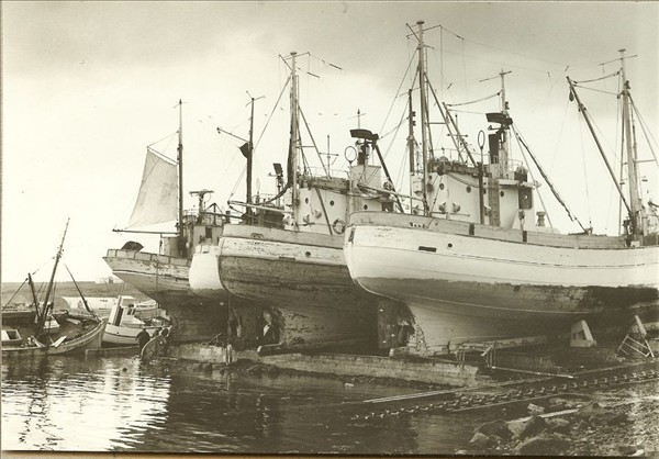 Hverjir þetta eru er ég ekki að öllu viss. Þó virðist ljóst að þessi sem er í sleðanum þ.e. annar frá vinstri er 601. Ingiber Ólafsson GK 35, síðan er einhver með heimahöfn í Keflavík, en sýnist hann heita Kópur og sé svo þá er þetta 641. Kópur KE 33 og sá sem er lengst til hægri er 102. Hrafn Sveinbjarnason II GK 10