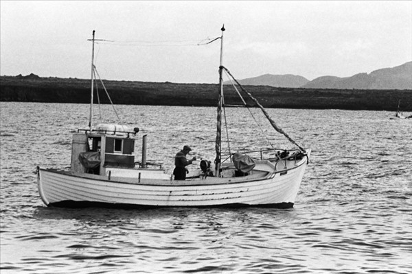 Trilla hugsanlega 5185. Mummi GK 71, úr Höfnum á handfæraveiðum, á víkunum vestan undir Reykjanestá © myndir Kristinn Benediktsson, 1975