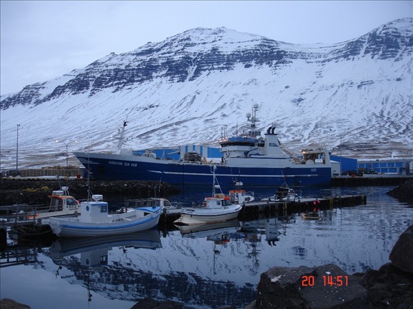 Bjarni G., sendi mér þessar myndir og texta: Silver Horn kom í morgun til Neskaupstaðar að lesta frosið. Hákon EA landaði í gær og verður frá veiðum einhverja daga vegna bilunar, svo eru myndir af smábátahöfninni og Sær NK að koma í höfn
