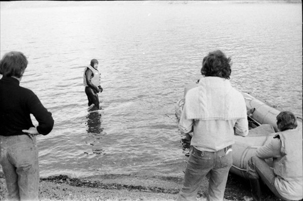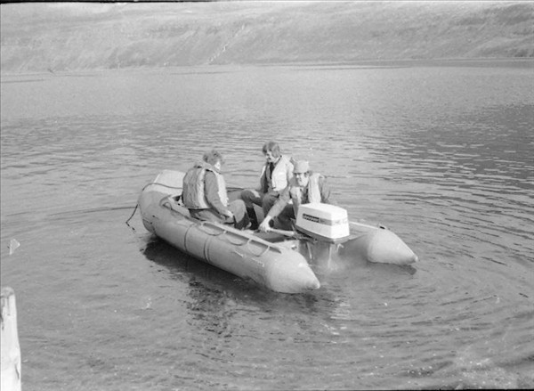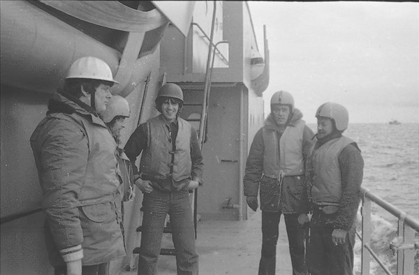 Tilbúnir í togaratöku fyrir vestan. F.v. Hafsteinn, Jón bátsmaður, Árni flækjufótur og Barði
