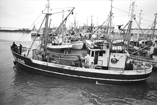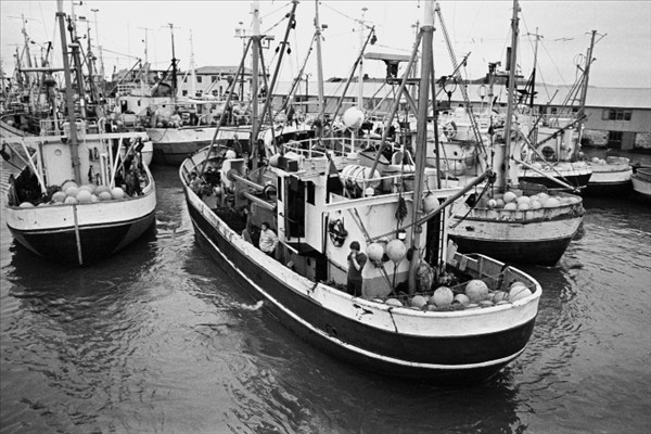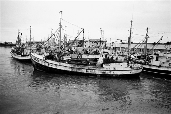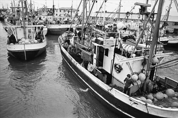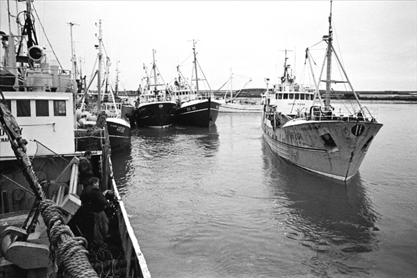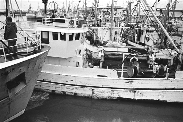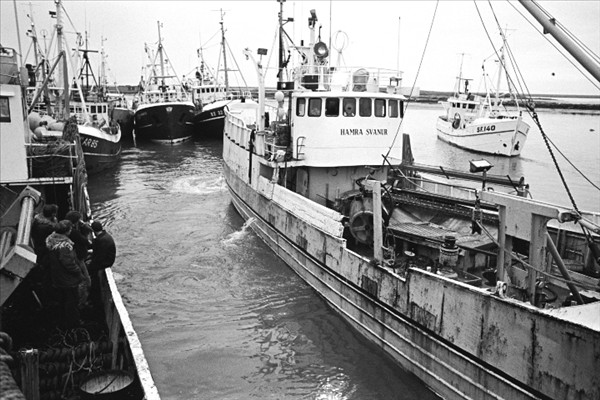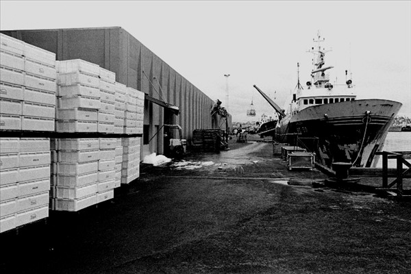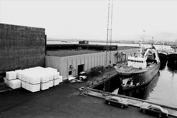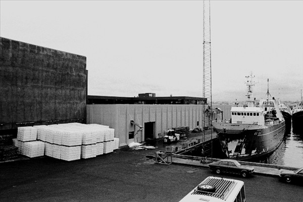 Togarar Ísbjarnarins hf. í Reykjavik ( fremst er Ásbjörn RE 50) landa fyrir framan nýtt frystihús við Reykjavíkurhöfn © myndir Kristinn Benediktsson, 1978