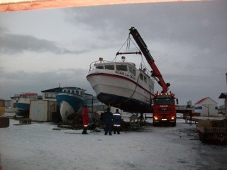 Á miðnætti aðra nótt birti ég fleiri myndir sem teknar voru í dag af bátnum og flutningabílnum