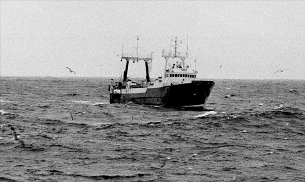 Skafti SK 3, í þoku á Vestfjarðarmiðum © mynd Kristinn Benediktsson, 1988