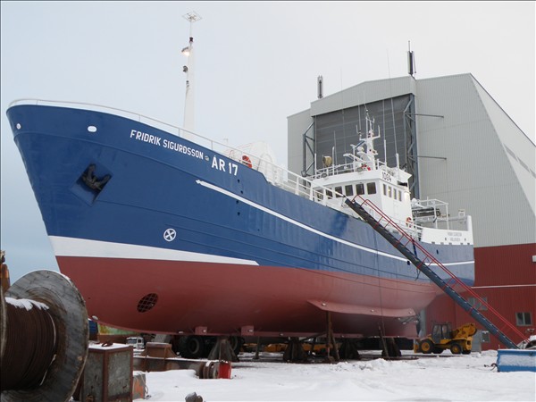 1084. Friðrik Sigurðsson ÁR 17, í Skipasmíðastöð Njarðvikur nú í hádeginu © mynd Emil Páll, 4. jan. 2012
