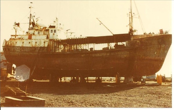 1236. Þórir SF 77, við upphaf yfirbyggingar, í Njarðvík © mynd Emil Páll, 1986