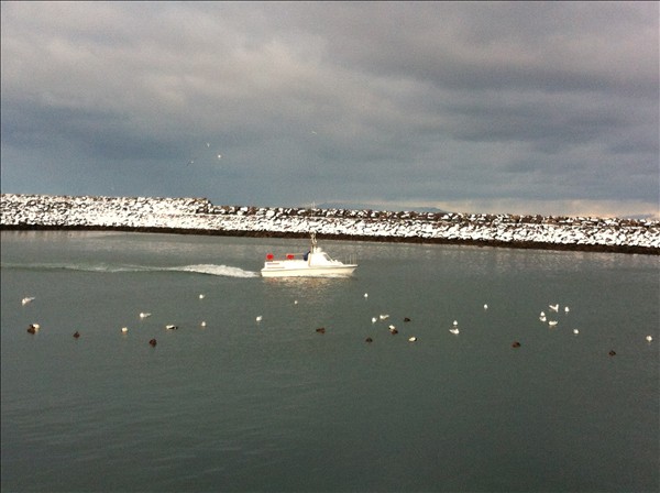 6390. Ísdögg SH 72. sjósetningin og sigling á höfninni. Á nokkrum myndanna sést einnig útgerðarmaður bátsins Arnór Ísfjörð © myndir Gylfi Scheving, 18. feb. 2012