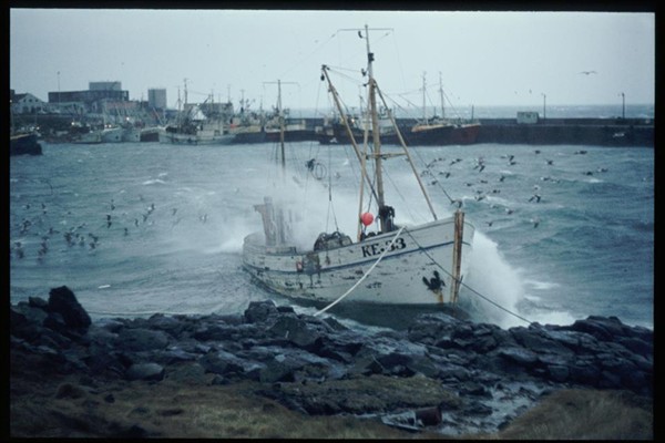 787. Þerney KE 33, á strandstað fyrir neðan Fiskiðjuna sálugu í Keflavíkurhöfn, árið 1970 © mynd Margeir Margeirsson.