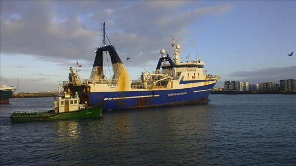 2273. Lódsinn ad adstoda Wilson Calais úr höfn í Eyjum í dag © mynd Sigurbrandur, 14. feb. 2012