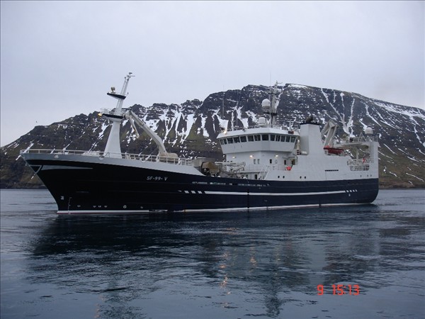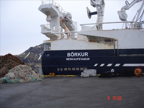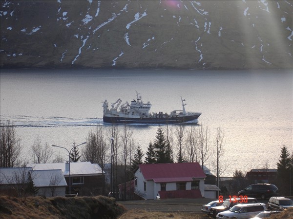 Bjarni Guðmundsson Neskaupstað náði myndum áðan þegar verið er að snúa skipinu til að merkja bb síðuna. Í brúarglugganum er skipstjórinn Sturla Þórðarson. Skipið á að halda síðan til veiða í kvöld