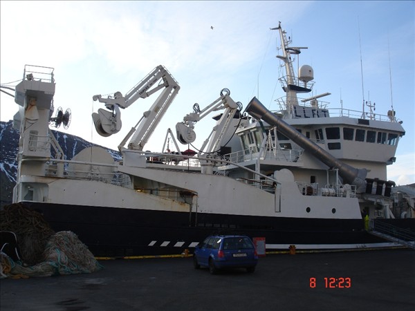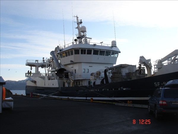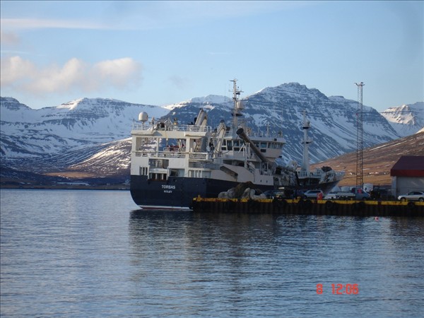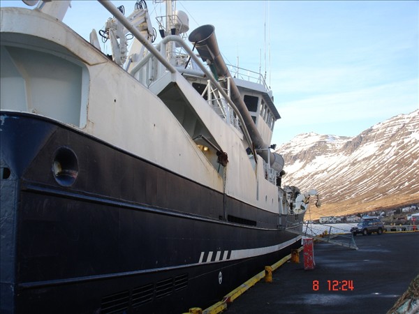 Erika komin að bryggju á Neskaupstað, sennilega til að skipta um nót © myndir Bjarni G., 8. feb. 2012