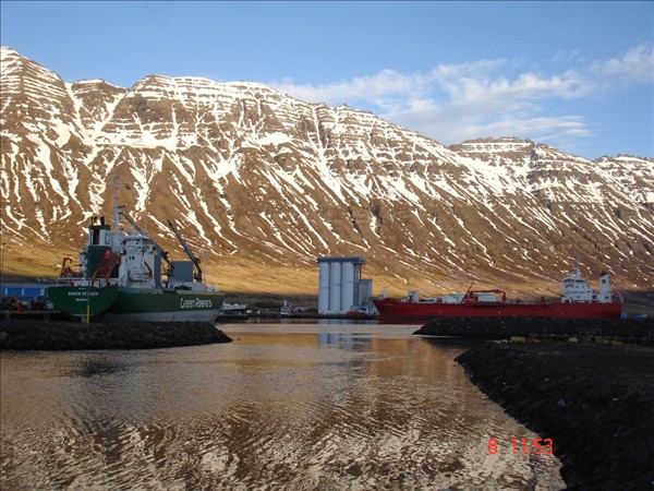 Green Bergen og Sten Frigg, Neskaupstað í morgun © myndir Bjarni G., 8. feb. 2011