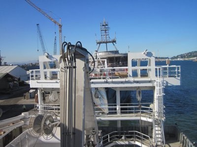 Eins og sést á þessum myndum er þetta stórt og glæsilegt skip sem fljótlega fer að ljúka smíði á.