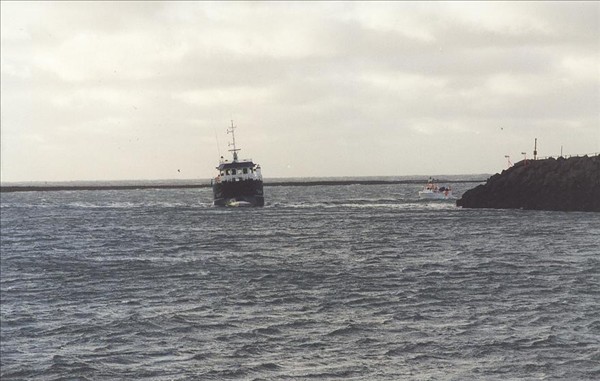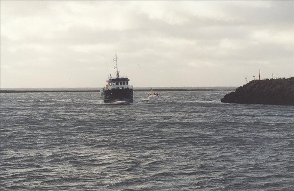 Glænýr (kannski nokkra mánaða) 2313. Örn KE 14 og 2110. Monica GK 136, koma inn til Sandgerðis © myndir Emil Páll, 1999