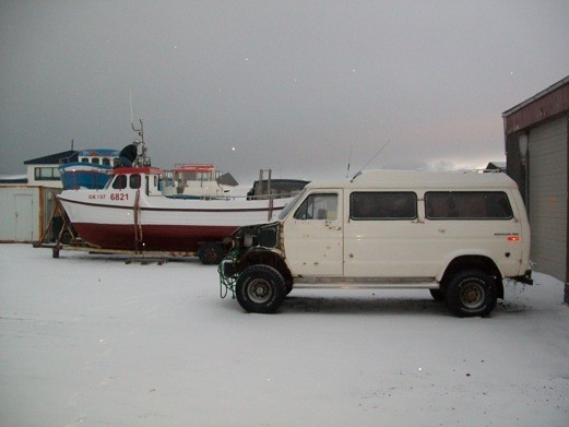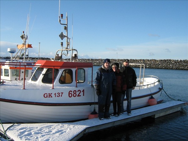Þessa mynd rakst ég á er ég var að flakka um netið. Ekki veit ég hver ljósmyndarinn er né heldur tilefni myndatökunnar, en sjá má m.a. eigendur bátsins