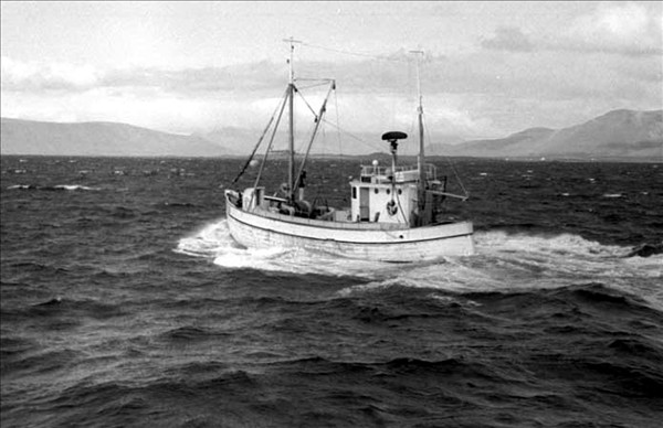 Óþekktur bátur á siglingu fyrir utan Reykjavík fyrir mörgum mörgum árum © mynd Hjalti Gíslason