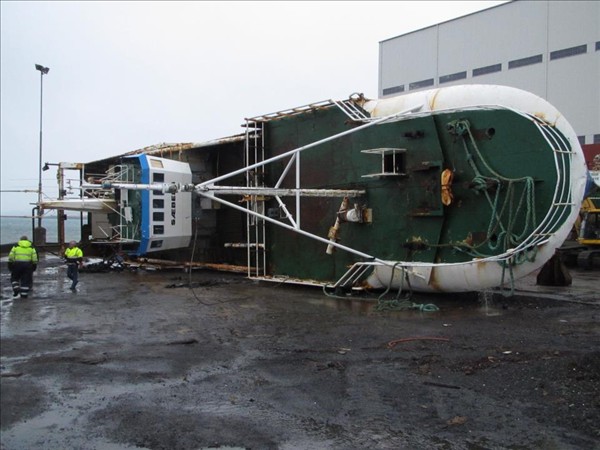 1143. Sæberg HF 224, komið á hliðina í Njarðvíkurslipp © myndir af FB síðu SN, 22. mars 2012