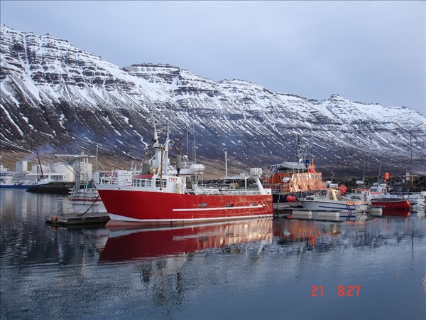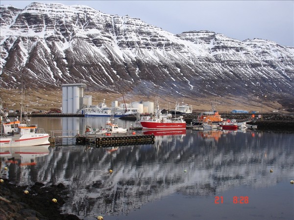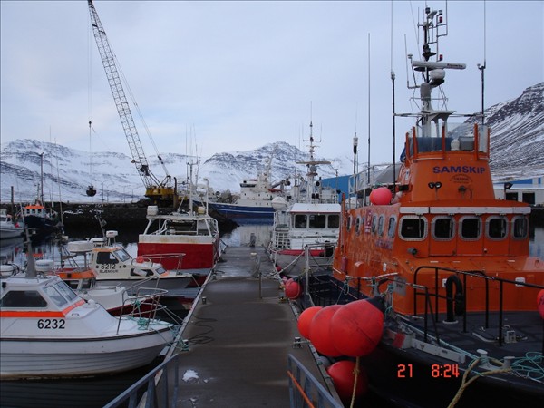 Loksins er hann fór sigldi hann fyrst til Ísafjarðar og eftir nokkra daga stopp þar hélt hann austur og kom þangað á miðnætti, fyrir sólarhring síðan. Þar sem þá var orðið dimmt biðu myndatökur Bjarna Guðmundssonar þangað til í dag að hann smellti þessari syrpu.