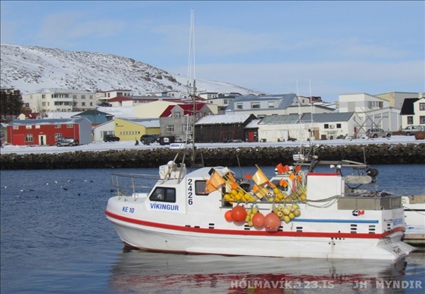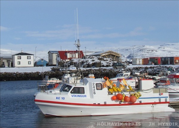 Í gær kom Víkingur KE 10 til Hólmavíkur, en þaðan mun hann stunda grásleppuveiðar. Við það tækifæri tók Jón Halldórsson, póstur og útgefandi hins merka vefs holmavik.123.is þessar myndir.