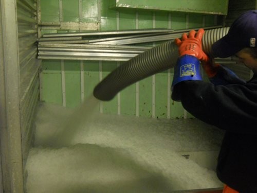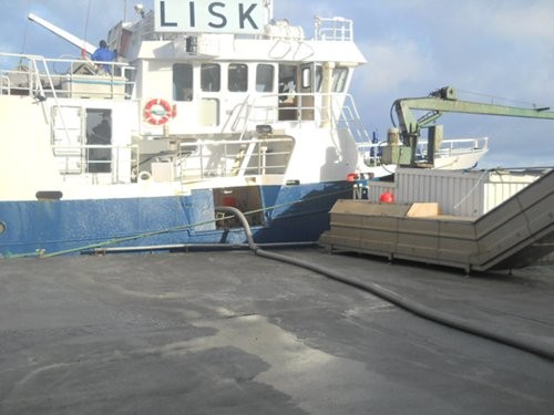 Ísinn tekinn um borð í Polarhav ex íslenskur, í Veidholmen, Noregi © myndir Jón Páll Jakobsson, 18. mars 2012