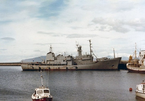 229. Þór utan á 159. Óðni, í Reykjavíkurhöfn fyrir tugum ára © mynd Emil Páll. Svona viljum við flest muna eftir Þór, en ekki eins og hann lítur út í Gufunesi í dag.