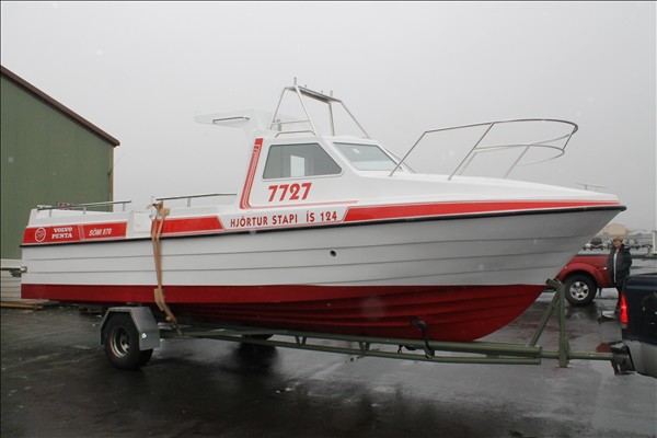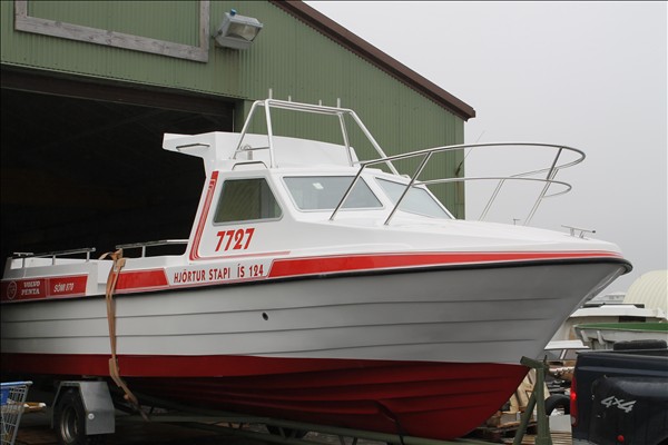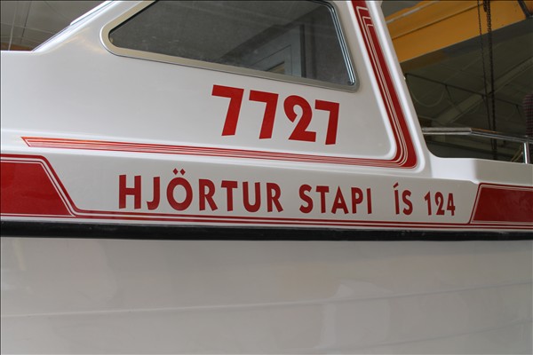 7727. Hjörtur Stapi ÍS 124, kemur út úr húsi á Ásbrú rétt fyrir hádegi í morgun