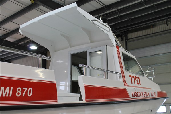 Báturinn tilbúinn til ferðar í Hafnarfjörð, en athygli hefur vakið sérstakt skjól sem komið er aftan á stýrishúsið