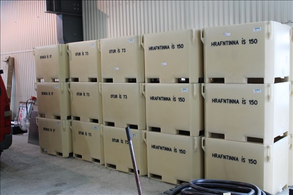 2823. Otur ÍS 73, 2824. Dengsi ÍS 17 og 2825. Hrafntinna ÍS 150, í Hafnarfirði, en þangað voru þeir fluttir fyrir nokkur. Þar sem ég hef fjallað mikið um þá í máli og myndum hér á síðunni læt ég þetta duga um þessa báta, en birti þó hér fyrir neðan myndir sem ég tók af fiskikörunum sem bíða eftir þeim í Hafnarfirði