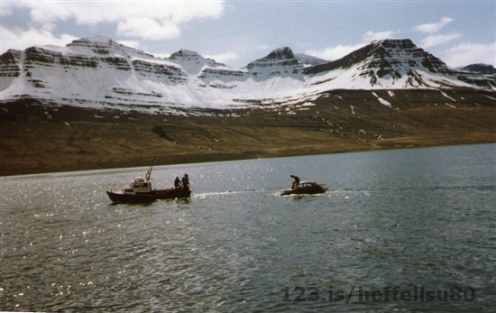 og þarna sérst á fullu gasi á leið út fjörðinn