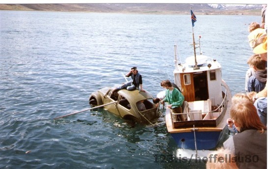 Ekki átti maður von á að sjá gamla Bjöllu á floti eins og þessi er
