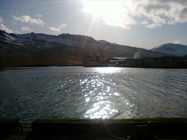 Hér eru tvær myndir þegar Alma kom til Neskaupstaðar síðasliðinn sunnudag eftir hádegi og ein til viðbótar sem Bjarni G. tók núna áðan