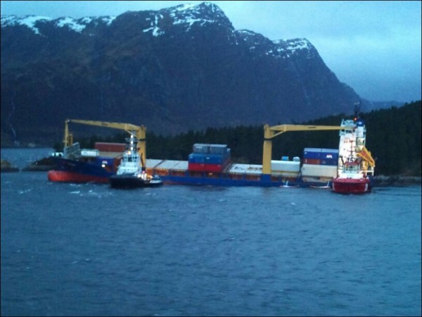 Strandstaðurinn er um 270 kílómetrum norðan við Bergen í Noregi. Talsmaður björgunaraðgerða á svæðinu segir að það sé ekki hætta á því að skipið sökkvi, þá sé verið að reyna fá það staðfest hvort olía hafi lekið í sjóinn, en sjáanleg olíubrák sé á svæðinu.