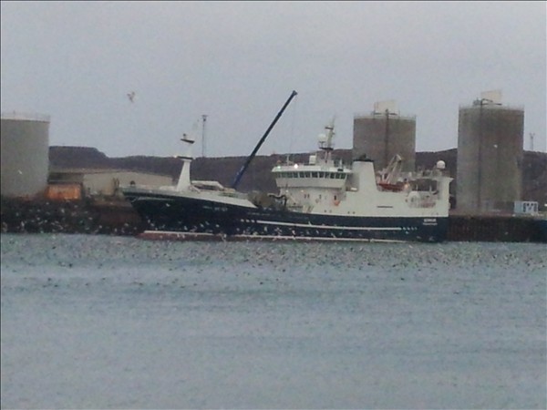 2827. Börkur NK 122 og Erika GR 18-119, í Helguvík í dag