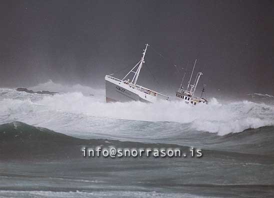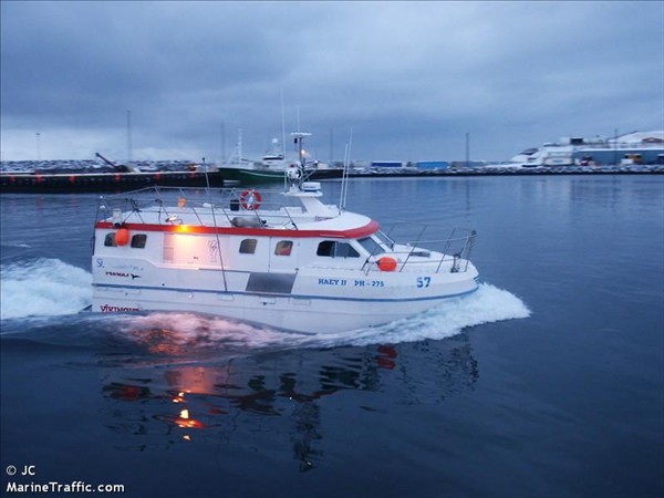 1421. Týr á reki stutt frá Grindavíkurhöfn og búið að sjósetja léttabátinn