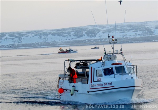 Hér koma þrjár myndir sem Jón Halldórsson sem er með vefinn holmavikl.123.is birti þar um helgina. Sýna þær þegar báturinn er að koma að landi og síðan er mynd af þeim feðgum sem tengjast útgerðinni.