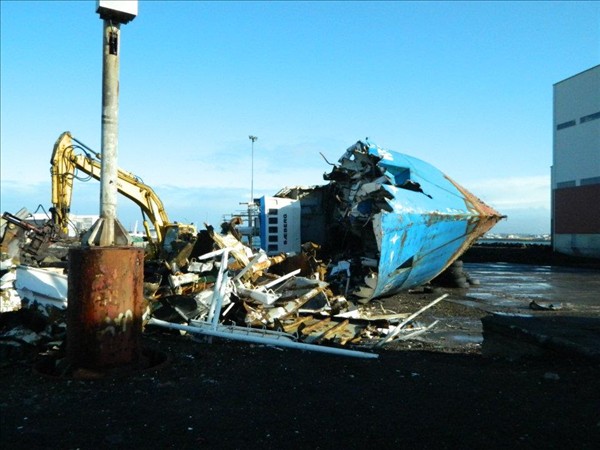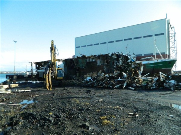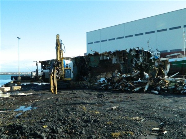 Hér kemur smá syrpa frá þeim slippurum í Skipasmíðastöð Njarðvikur sem þeir settu á Facebooksíðu sína um það þegar verið var að rífa Sæberg HF 224 í dag.