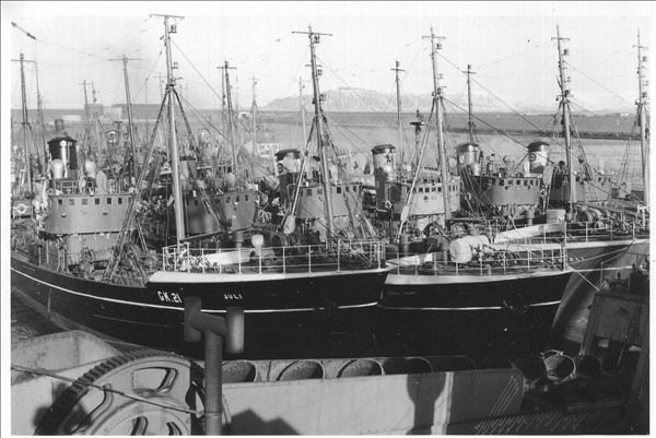 Gamlir togarar: Júlí, Egill rauði, Helgafell, Akurey, óþekktur og Hvalfell