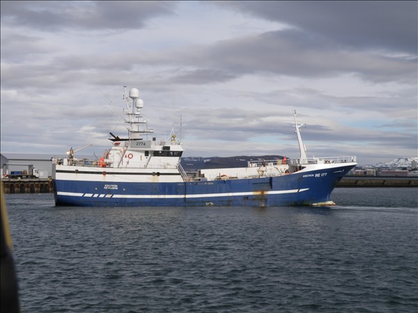 Kristrún RE 177 - syrpa er sýnir bátinn bakka frá bryggju og sigla út úr Reykjavíkurhöfn