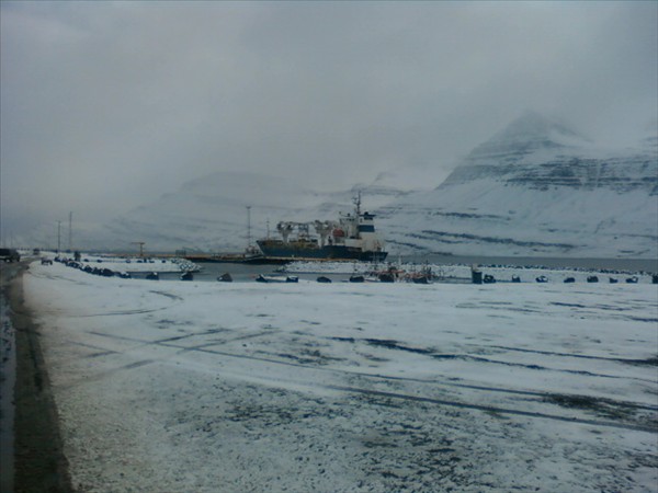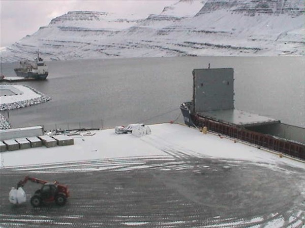 Fyrrum Jökulfell sem nú heitir Green Atlantic, fór í gær eins og fram kom hér á síðunni frá Reyðarfirði, en er nú komið aftur þangað. Virðist þeir hafa verið að prufusigla út af Austfjörðum því samkvæmt AIS fóru þeir þar í nokkra hringi áður en þeir komu á ný til lands. Sýni ég nú mynd sem ég tók rétt fyrir hádegi á vefmyndavélina á Reyðarfirði og sést skipið þar komið í pláss það sem það var í undanfarnar 7 mánuði.